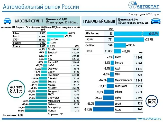 В то же время, на рынках Соединённых Штатов Америки и Западной Европы наблюдалось заметное снижение продаж. В США было продано 1 264 042 автомобиля, что означает падение на 4,3%. В Западной Европе июньские продажи сократились почти на 7%, составив 1 260 867 единиц. Восточная Европа также показала отрицательную динамику, зафиксировав спад почти на 10% с объёмом в 384 590 реализованных автомобилей.